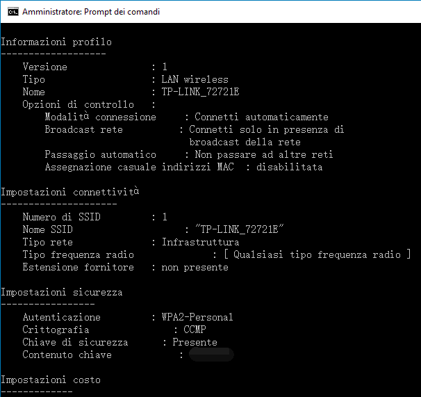 Trovare la password Wi-Fi con il prompt dei comandi